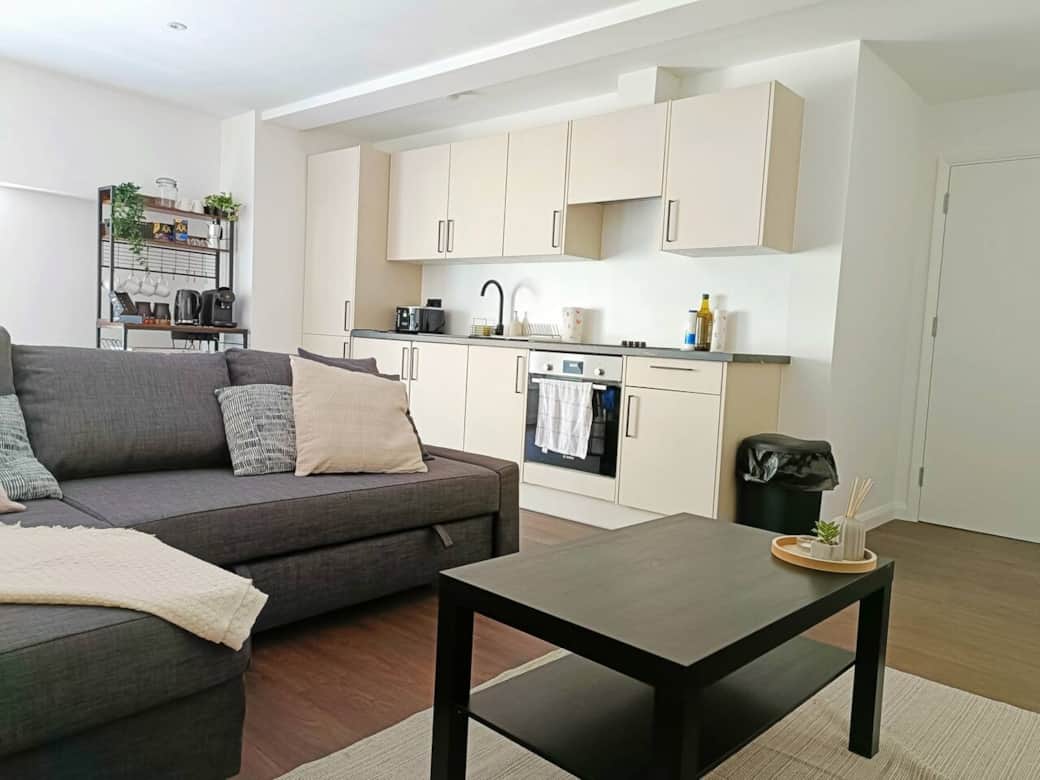 Brand-new Old Town apartment with super flexible sleeping: Bedroom 1 is twin or super-king; Bedroom 2 has a king + single; plus a comfy sofa bed. Blackout curtains and 100% cotton bedding for great sleep. Stream on the 43" Smart TV, work at the desk and cook in the fully equipped kitchen. Start your day at the L’OR espresso bar. Fast Wi-Fi, washer-dryer and self check-in by keypad. Ideal for contractors, families and business trips. In the heart of Old Town, steps to cafes, bars, buses & shops.
